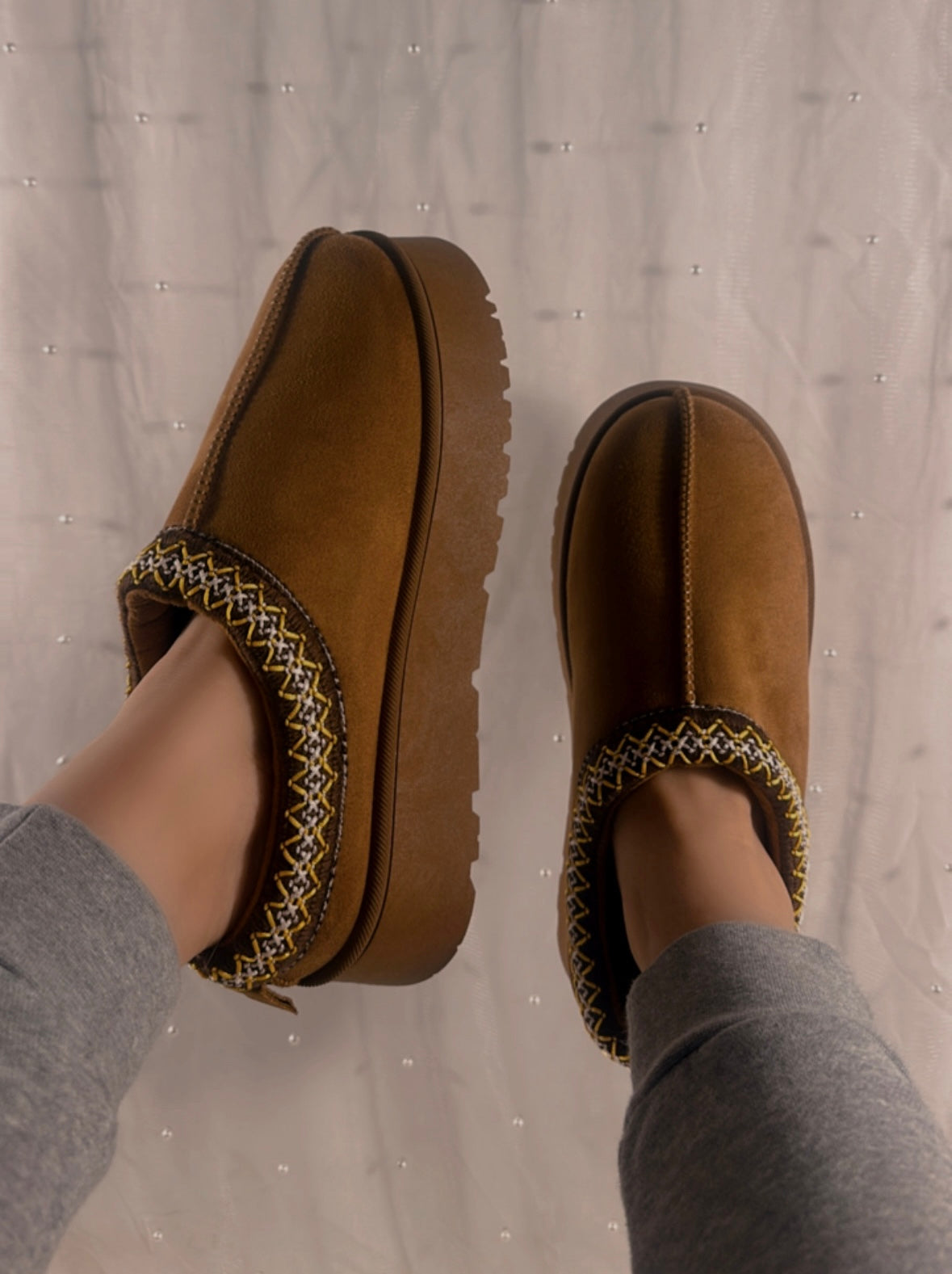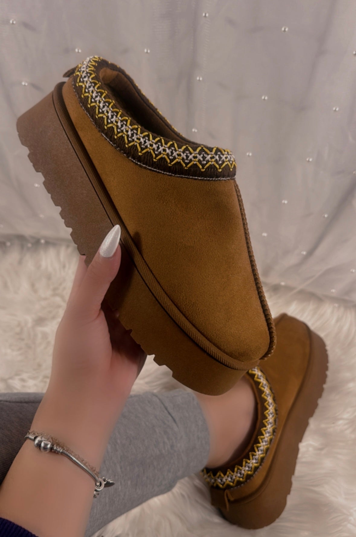 The Alison Boot includes a 1.5 inch platform, easy slip-on design, and is true to size. The inside features faux fur for added comfort and warmth, along with embroidered detail.