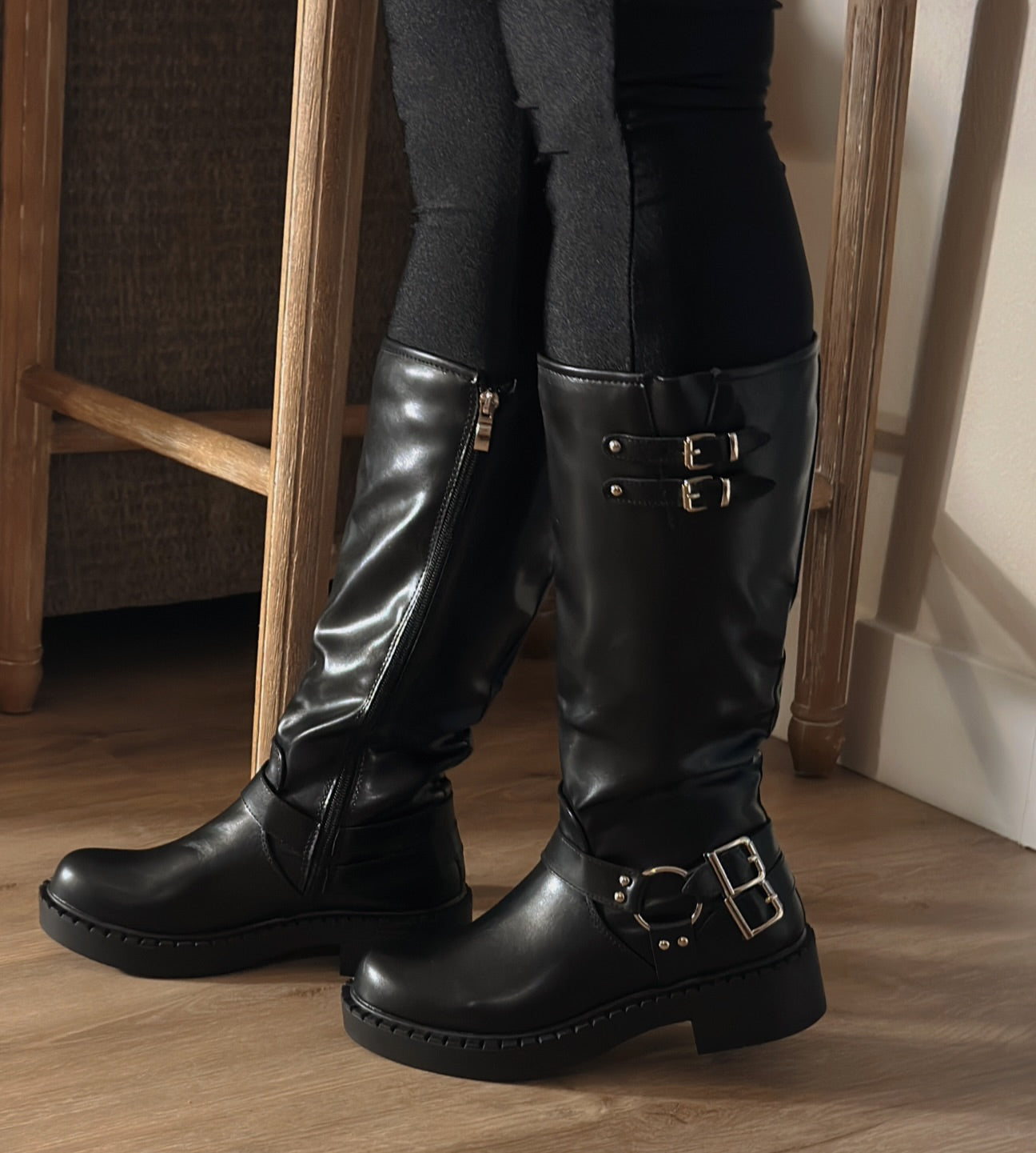 The Mereli Boot features adjustable buckles and a side zipper that provide comfort and a snug fit for your feet. Additionally, the boots have an ideal height that reaches just below the knees for maximum functionality.