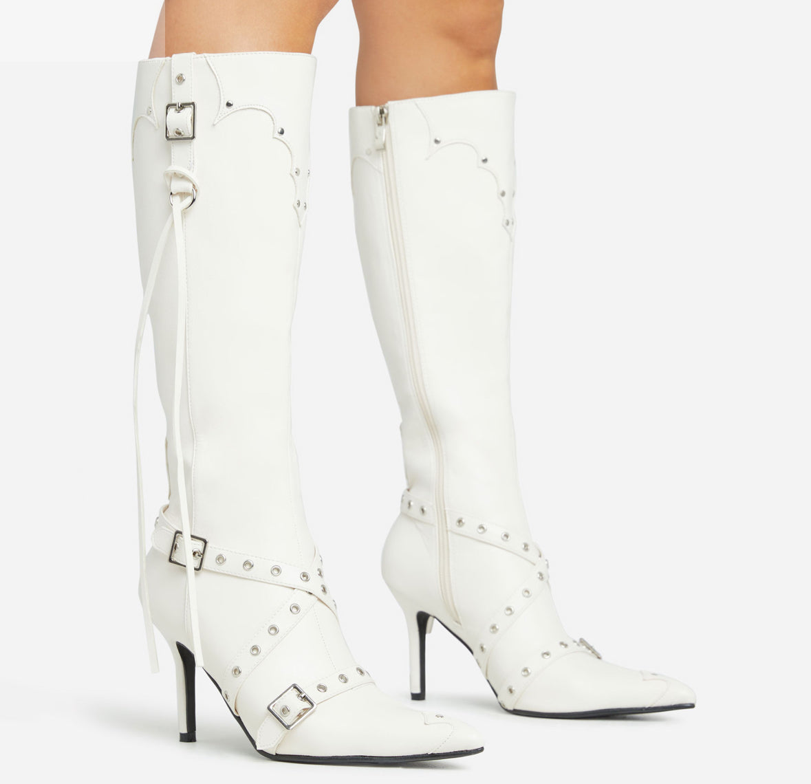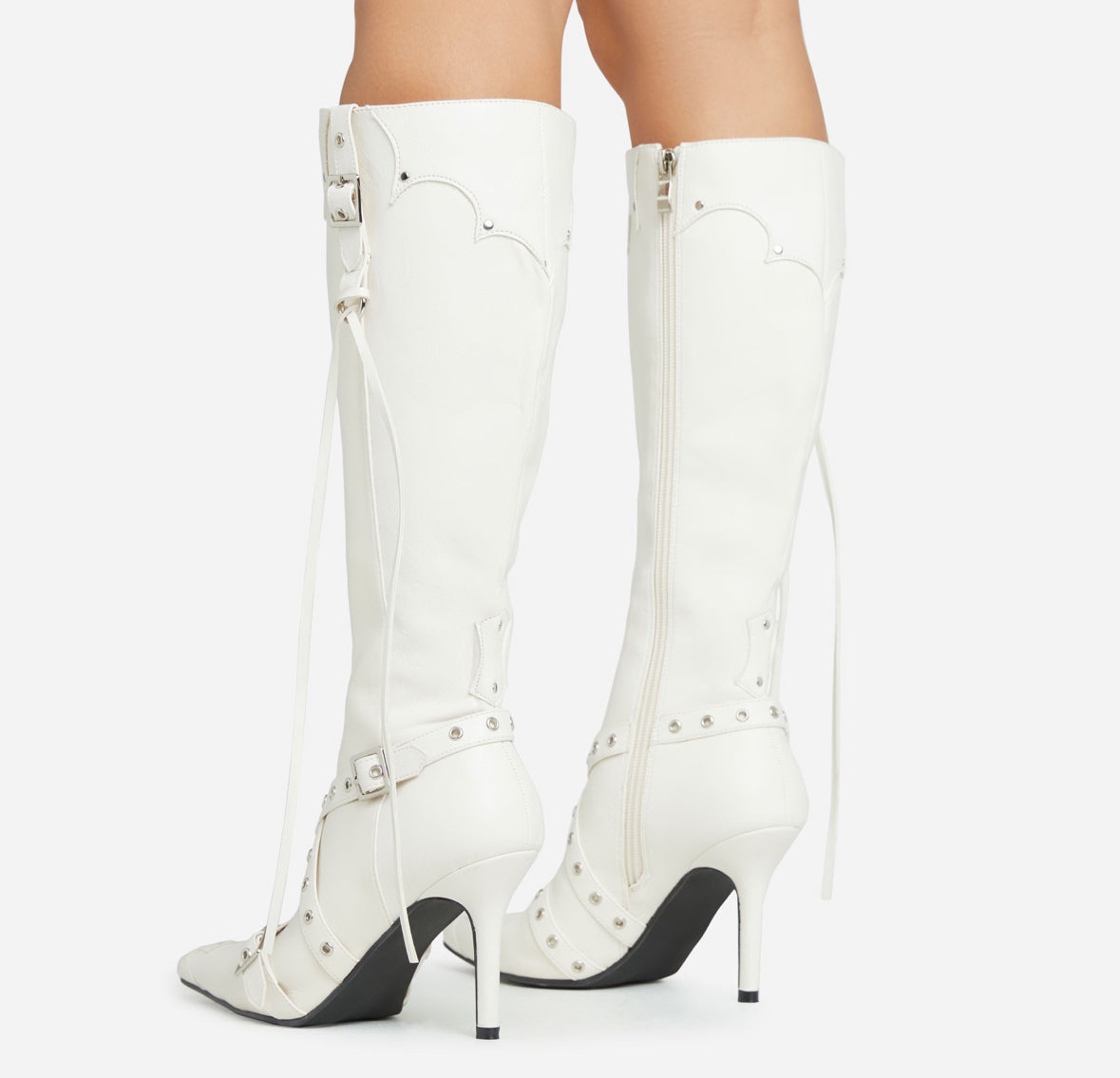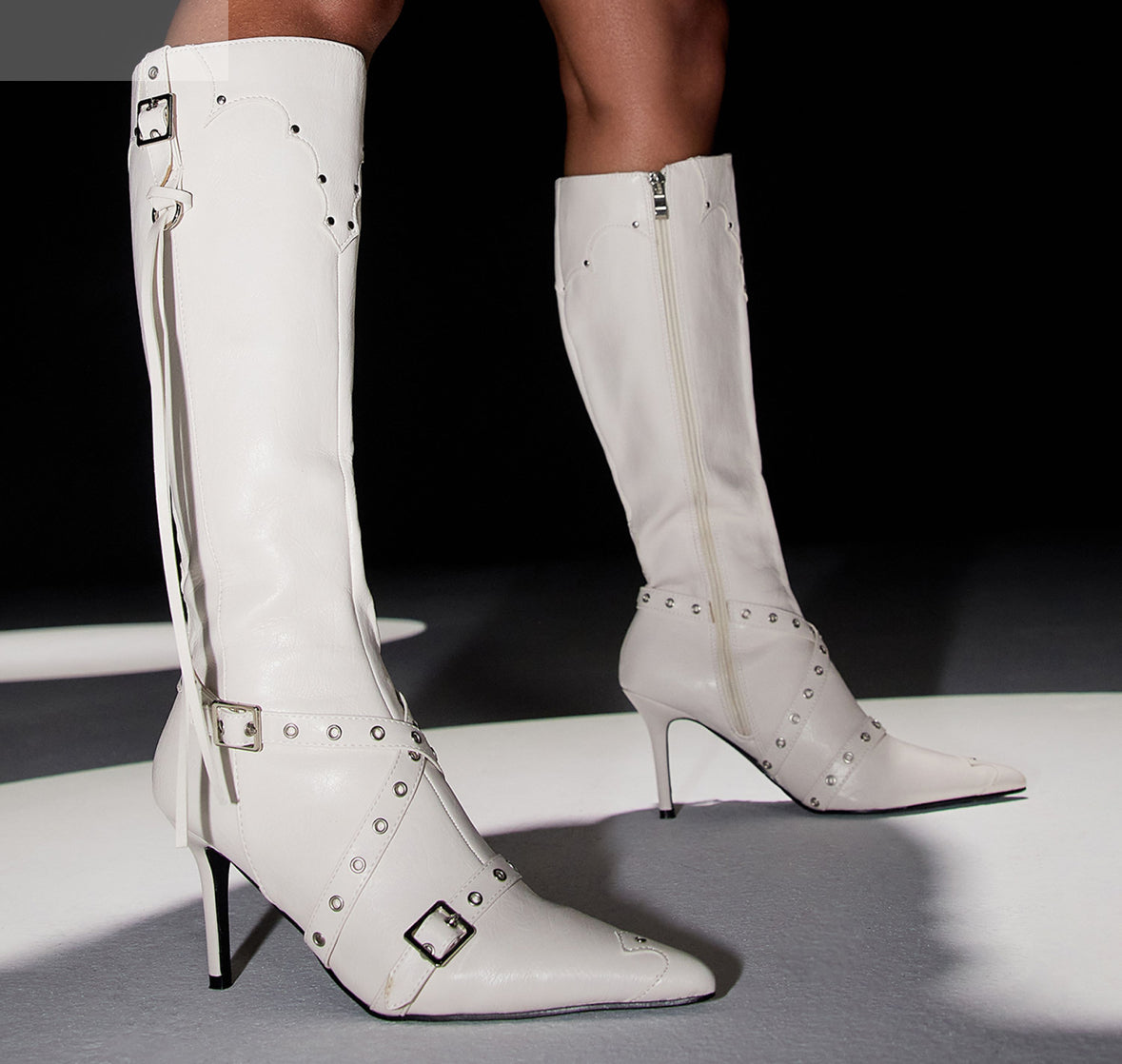 The Tatania Boot with a 3.9 inch heel and a convenient side zipper. Its calf area offers no stretch, making it unsuitable for those with wider calves.
