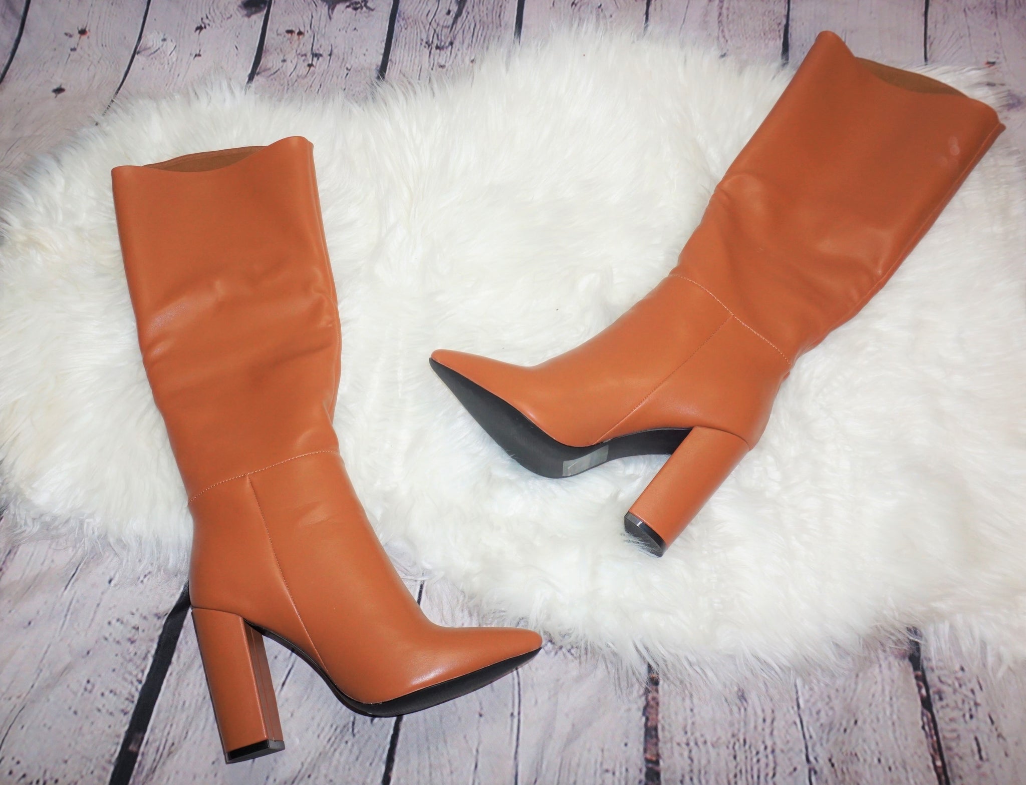 These boots feature a closed pointy toe and a chunky 4.25" heel, making them comfortable and true to size. The camel color adds a touch of sophistication to any outfit. No stretching required thanks to the easy pull-on styling and padded insoles.