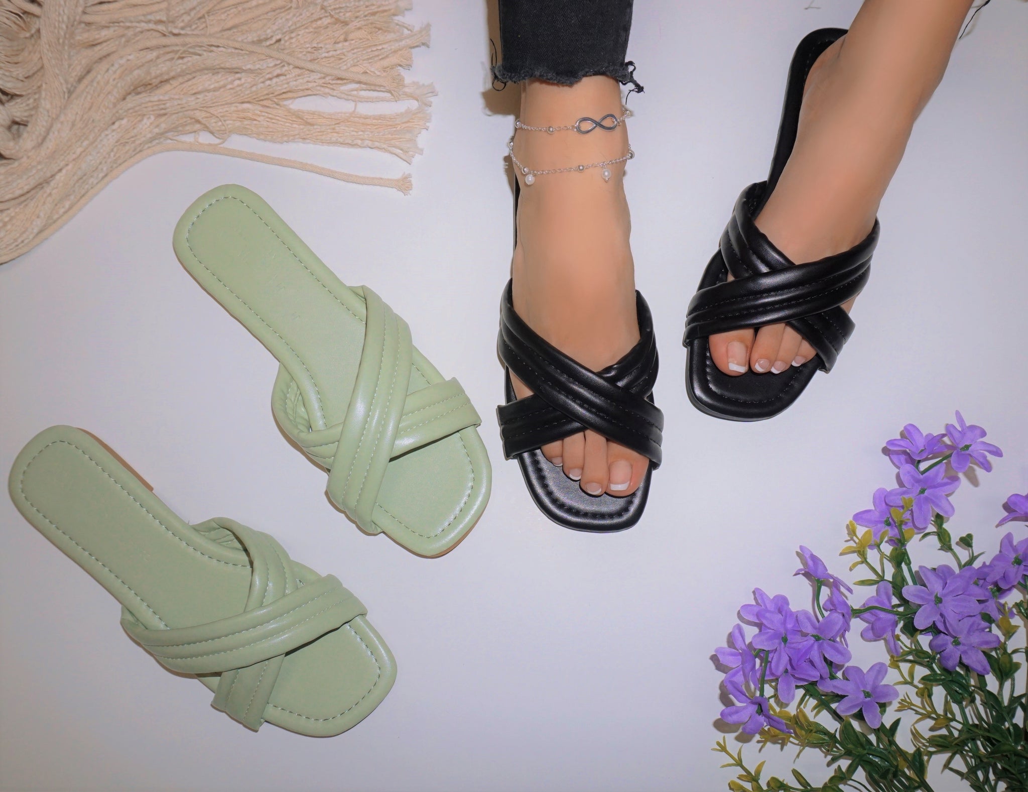 Slip-On Entry Criss Cross Sandal Square Toe Lightly Padded Insole Mint Sandal True to Size