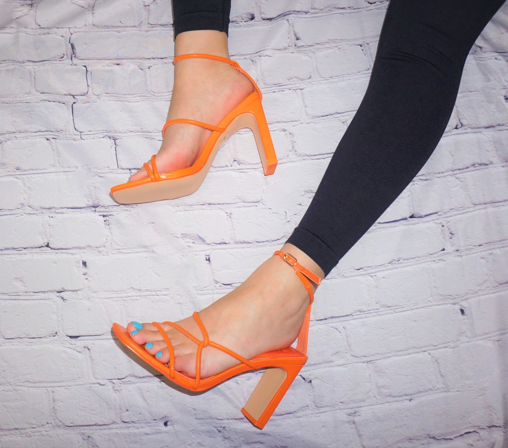 Heel Height Approx: 3.75 True to Size Adjustable Around the ankle buckle Unique Chunky Heel Lightly Padded Insole Orange Heel