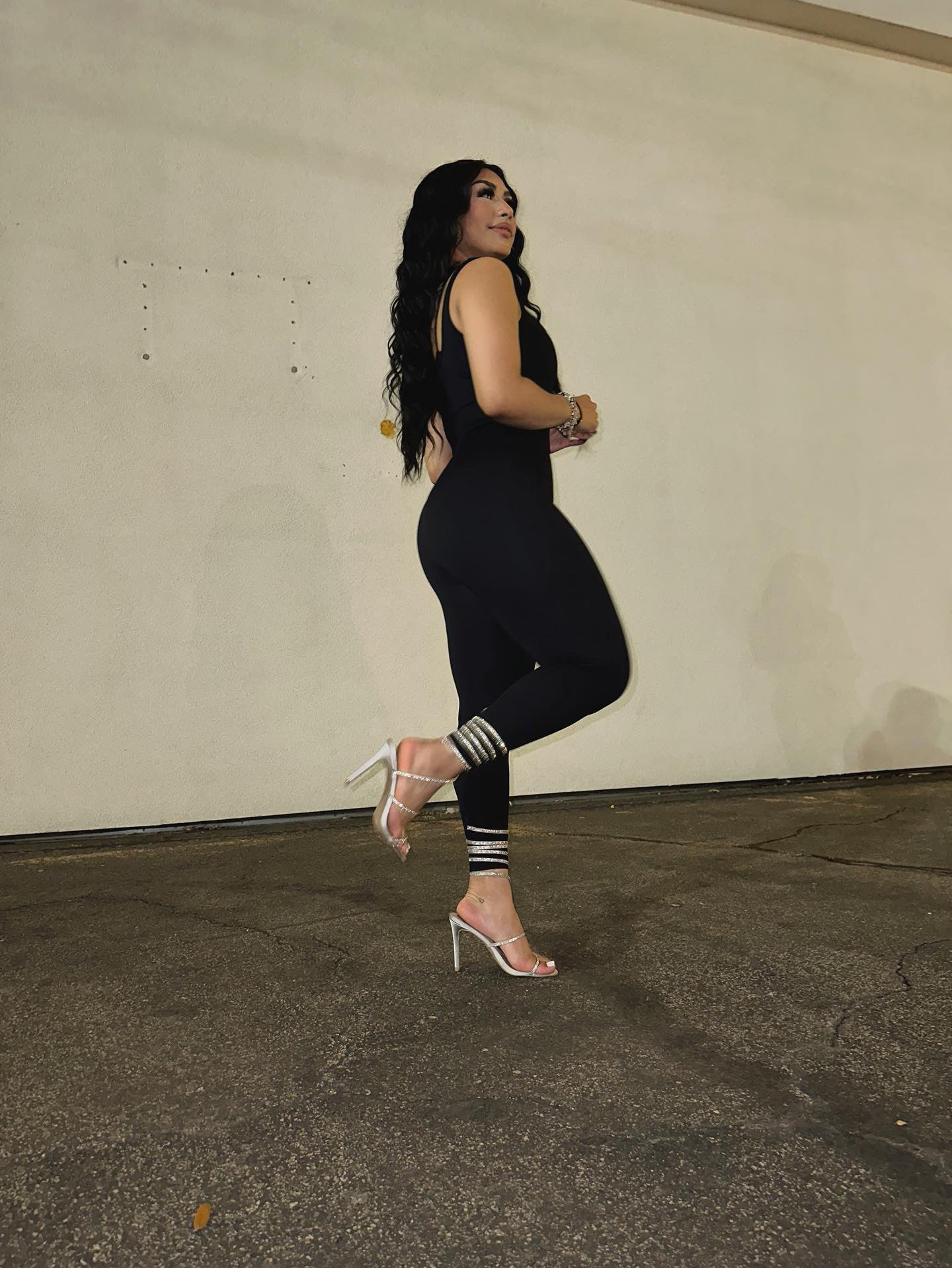 Shimmering rhinestones embellish the wrapped straps on these glamorous satin sandals Open Squared Toe Heel Height Approx: 4.25 Silver Heel Silver Satin single sole Heel True to Size