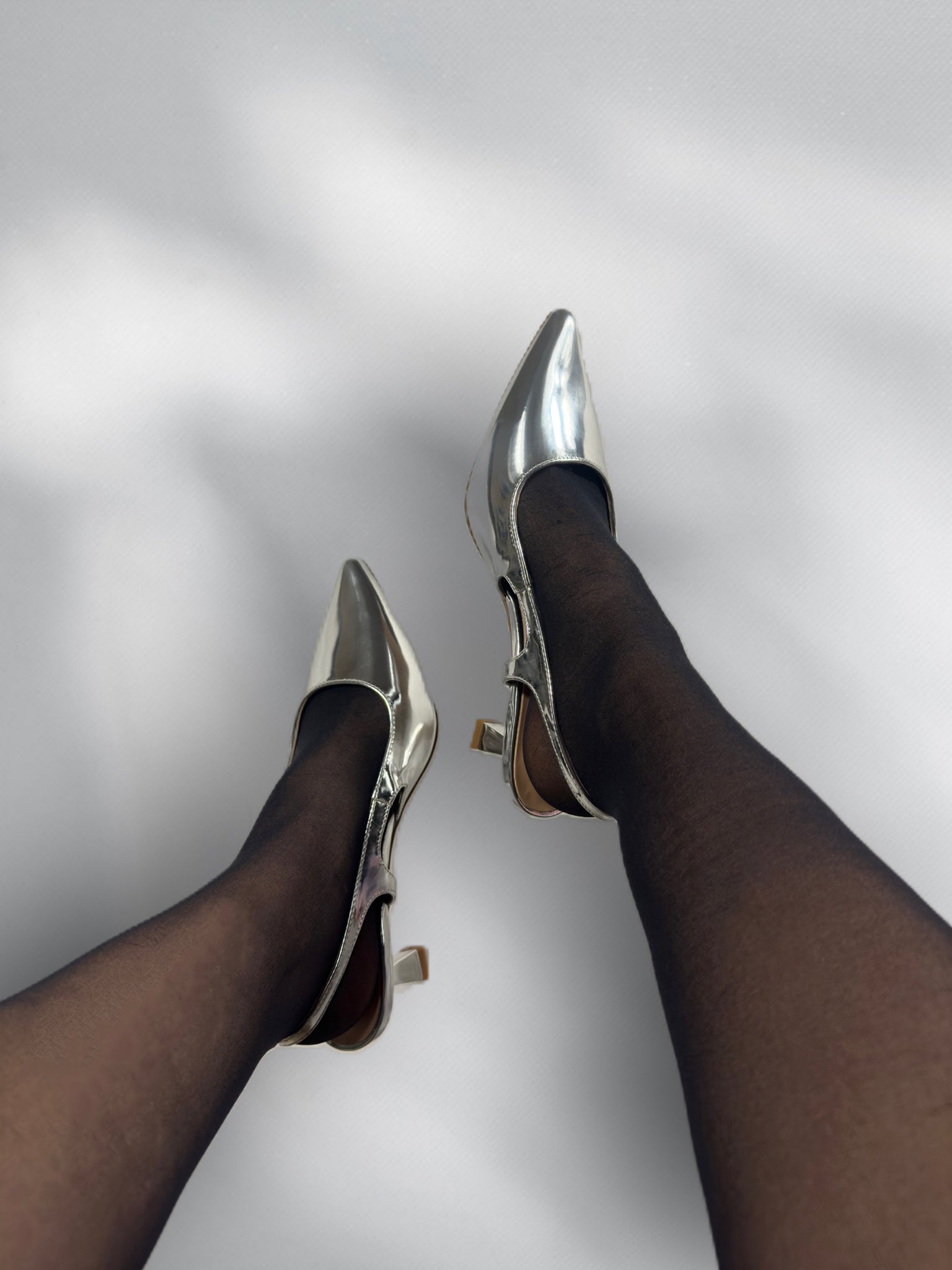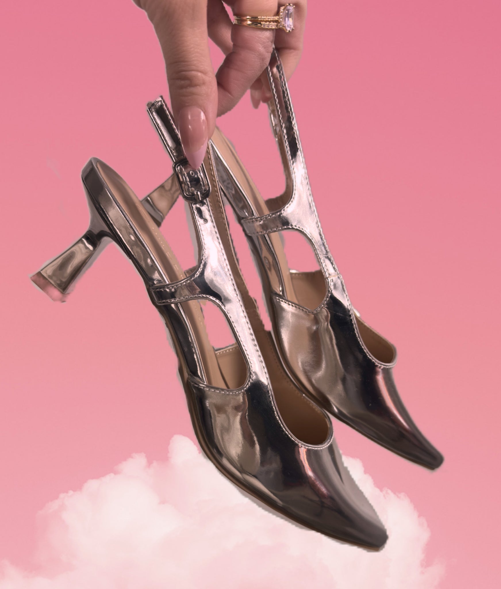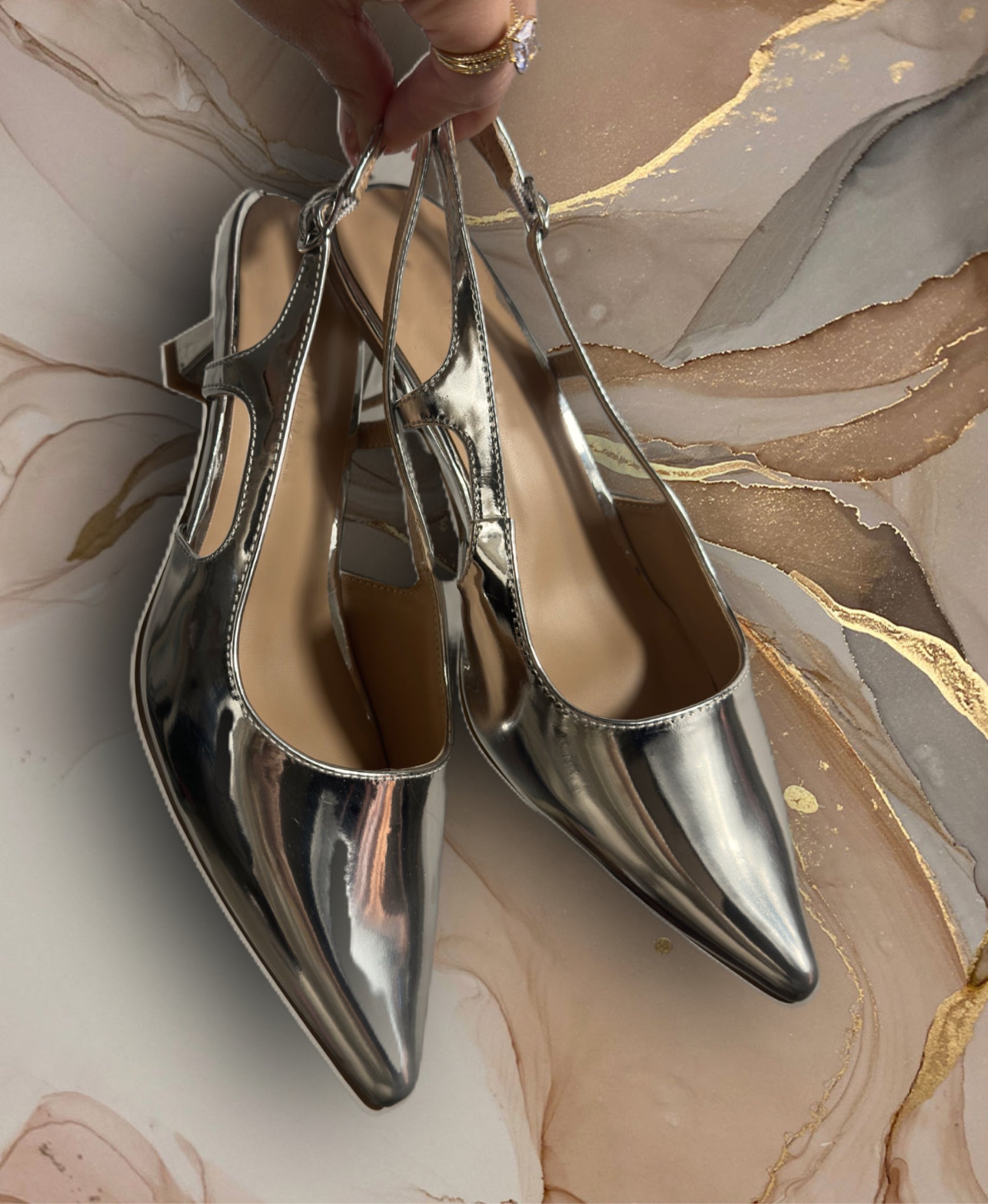 These Silver Pumps are expertly designed with a low block heel and side buckle for ultimate comfort.